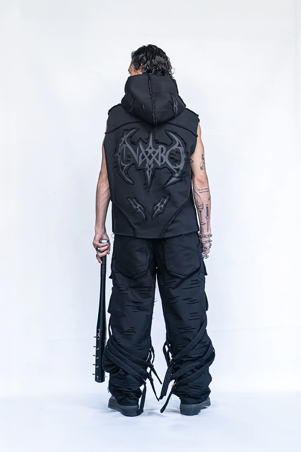 Un objeto que combina diseño urbano y actitud irreverente, pensado para quienes buscan desafiar lo convencional. Este bate de aluminio negro mate destaca por su estética poderosa y disruptiva, con detalles de púas metálicas distribuidas a lo largo del cuerpo, reflejando la esencia rebelde y futurista de NXBO.